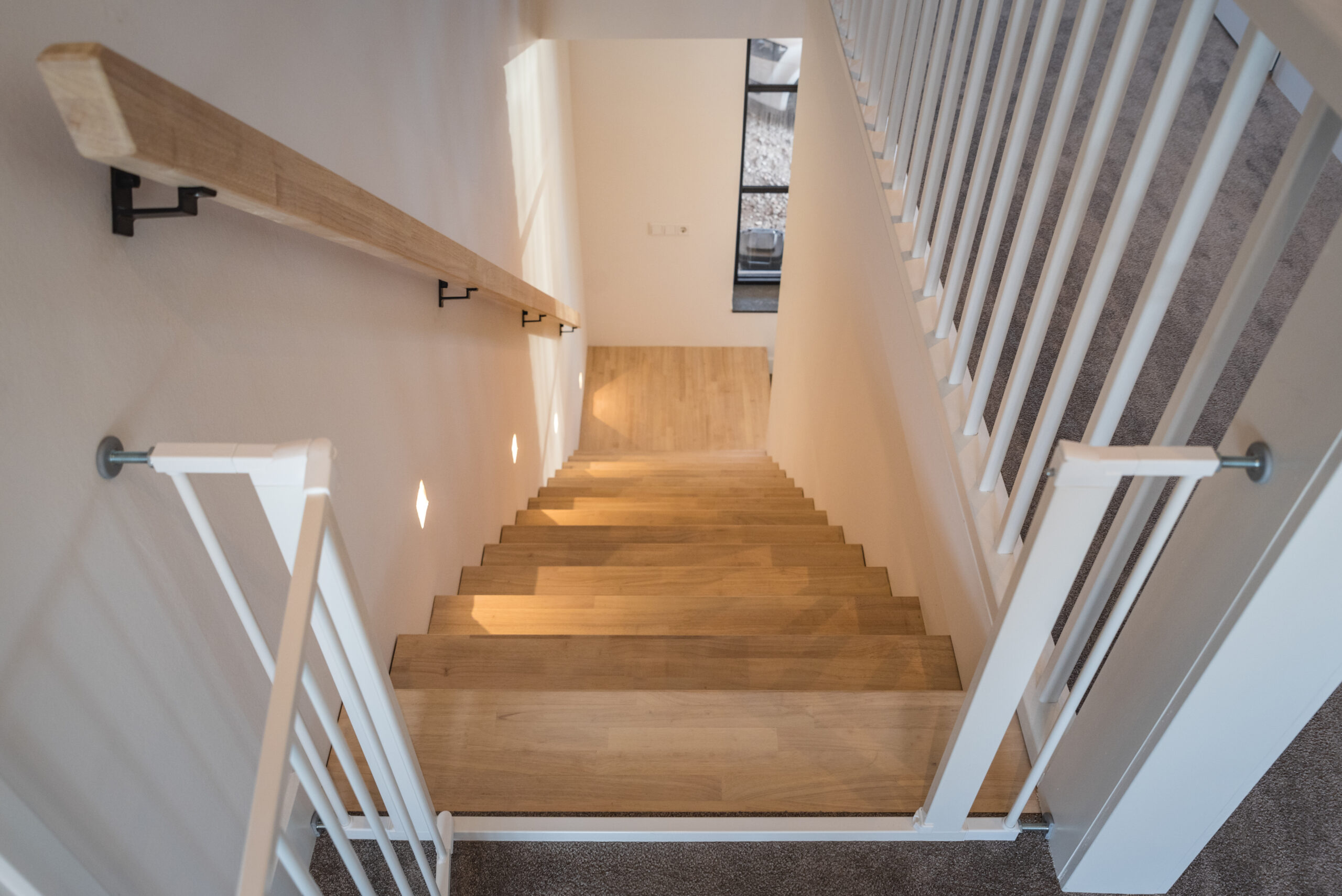 Bij een trap die tussen twee wanden geplaatst wordt, is een keepboom trap een mooie oplossing. Hierbij lijken de treden als het ware in de muur door te lopen, omdat er geen trapboom langs de muur zichtbaar is. Dat zorgt voor een strak en rustig beeld en geeft de trap een bijzonder karakter.